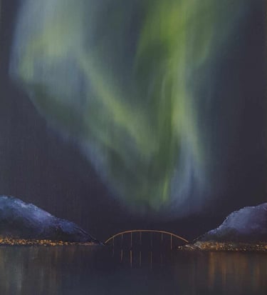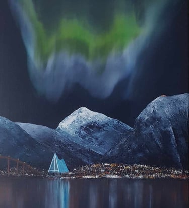 At Boreal Paintings by Mariana, we celebrate nature's beauty through authentic, original paintings of the breathtaking aurora borealis.